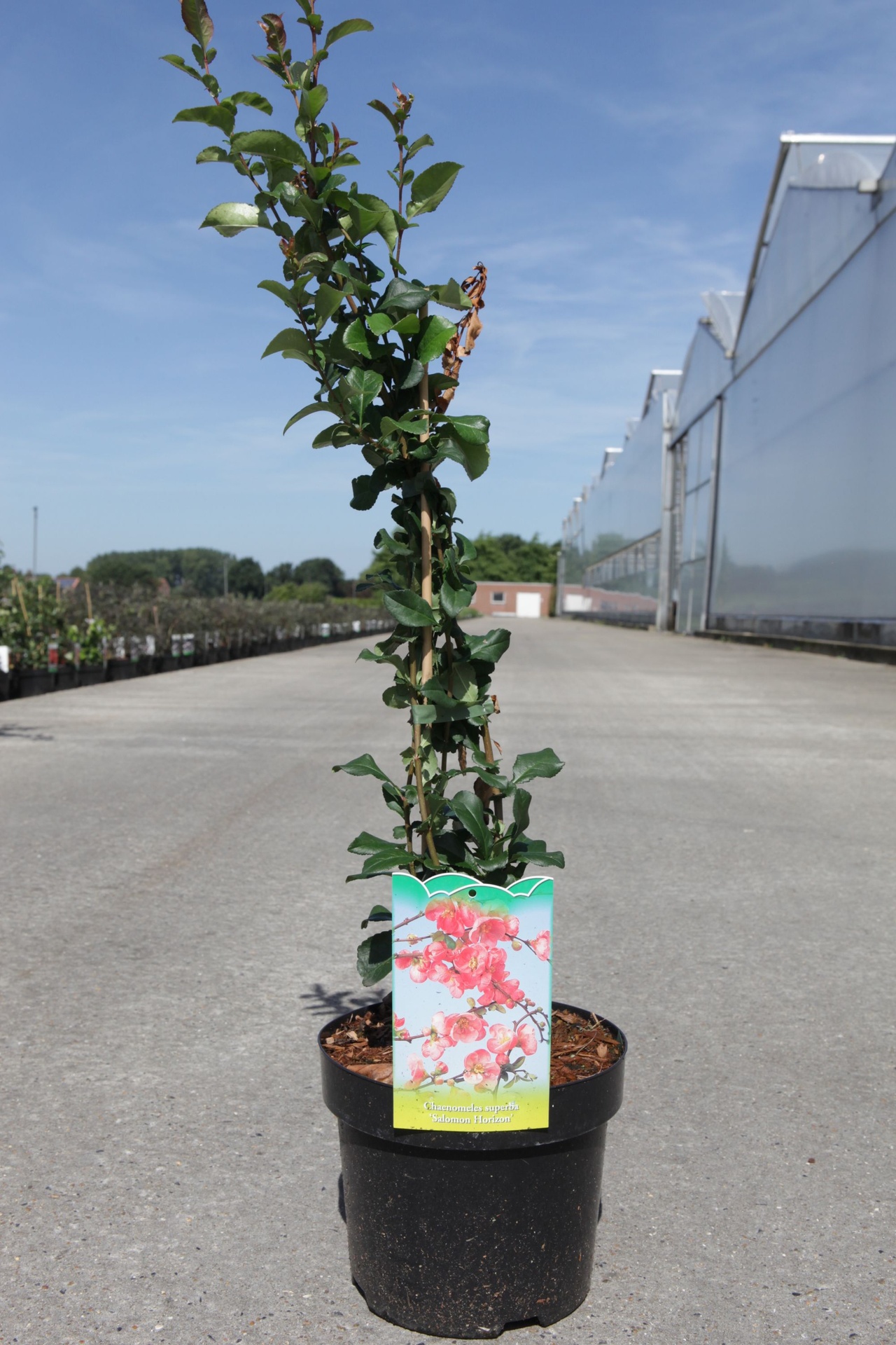 Chaenomeles superba 'Salmon Horizon' cont. 3,6L 40/+ cm mit Stock +B