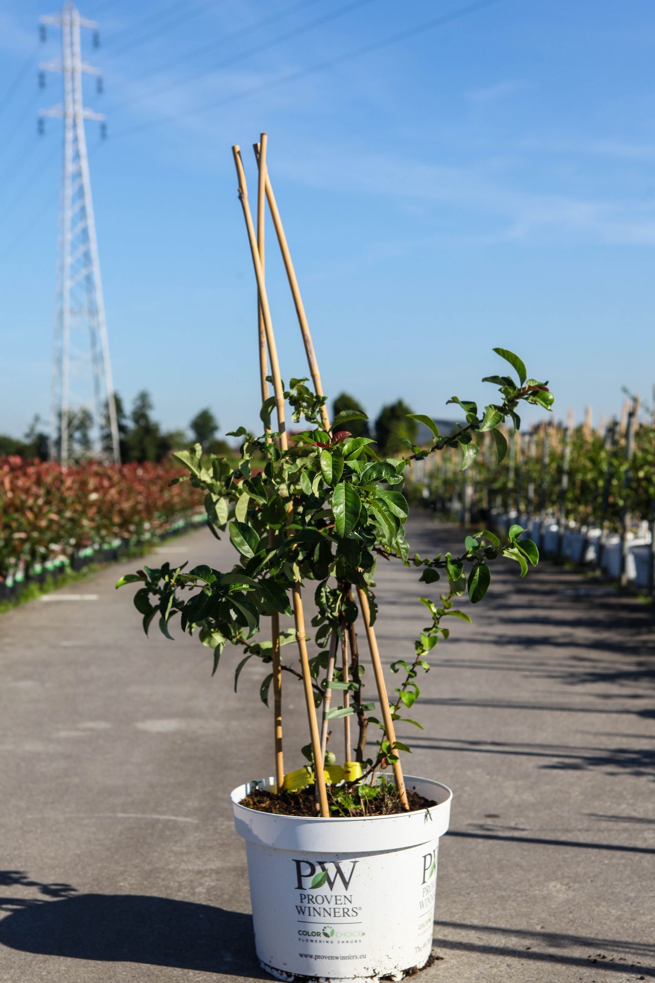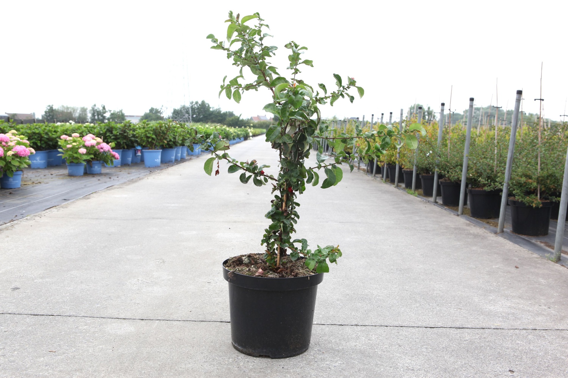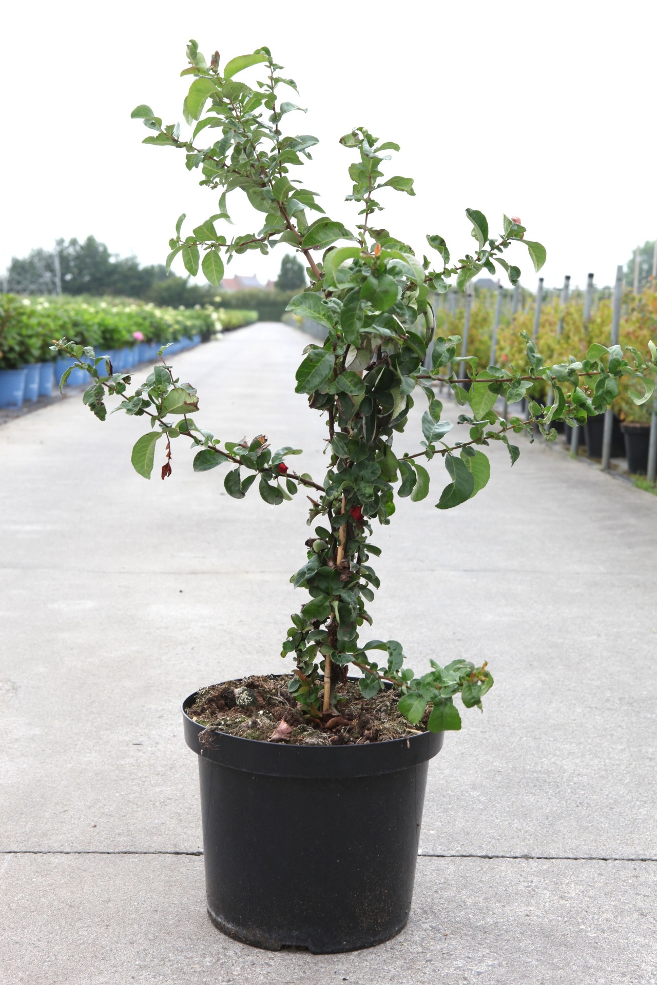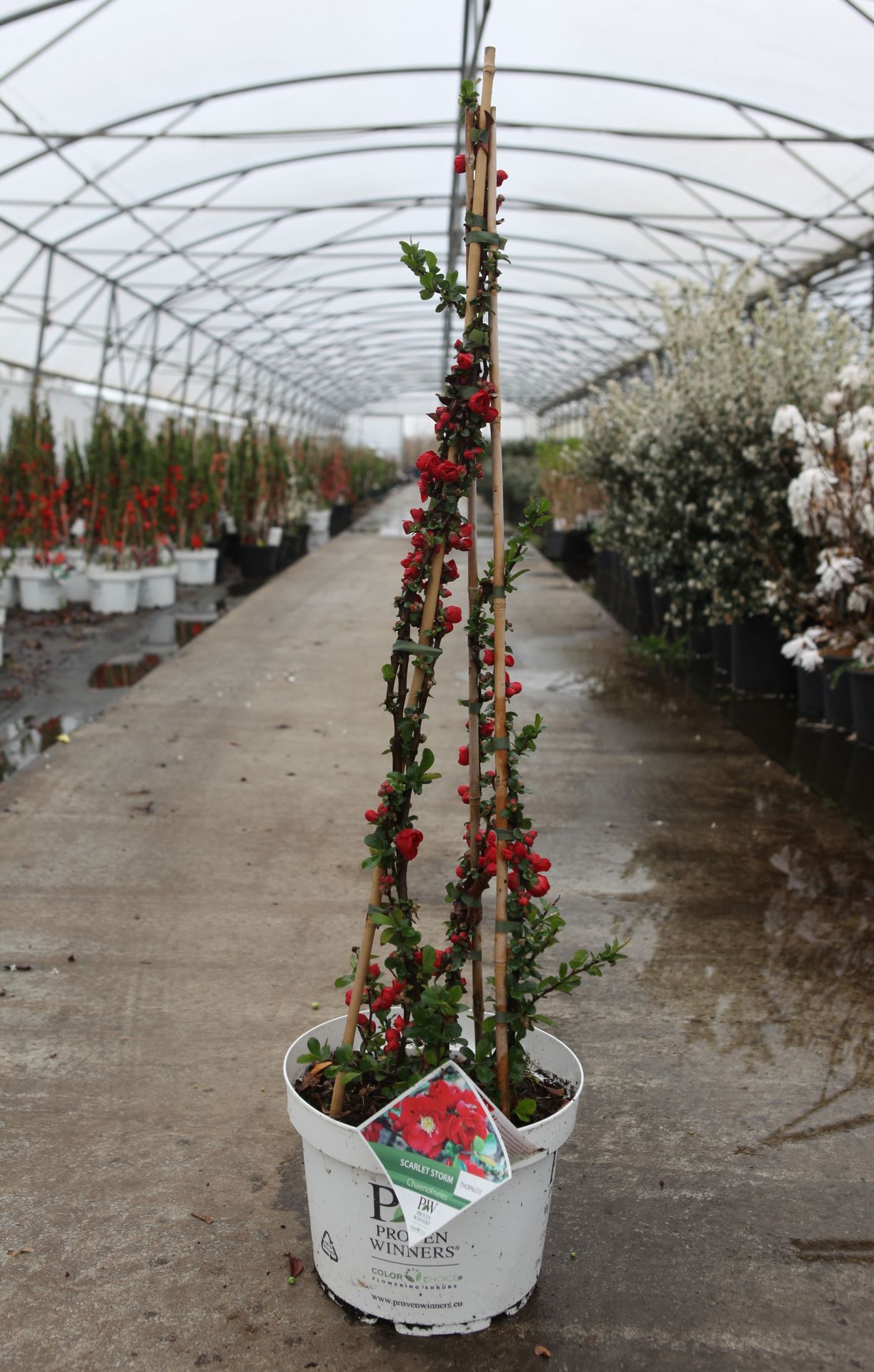Chaenomeles speciosa Proven Winners® 'Scarlet Storm' (PBR) cont. 10L deco 80/+ cm pyramid +p