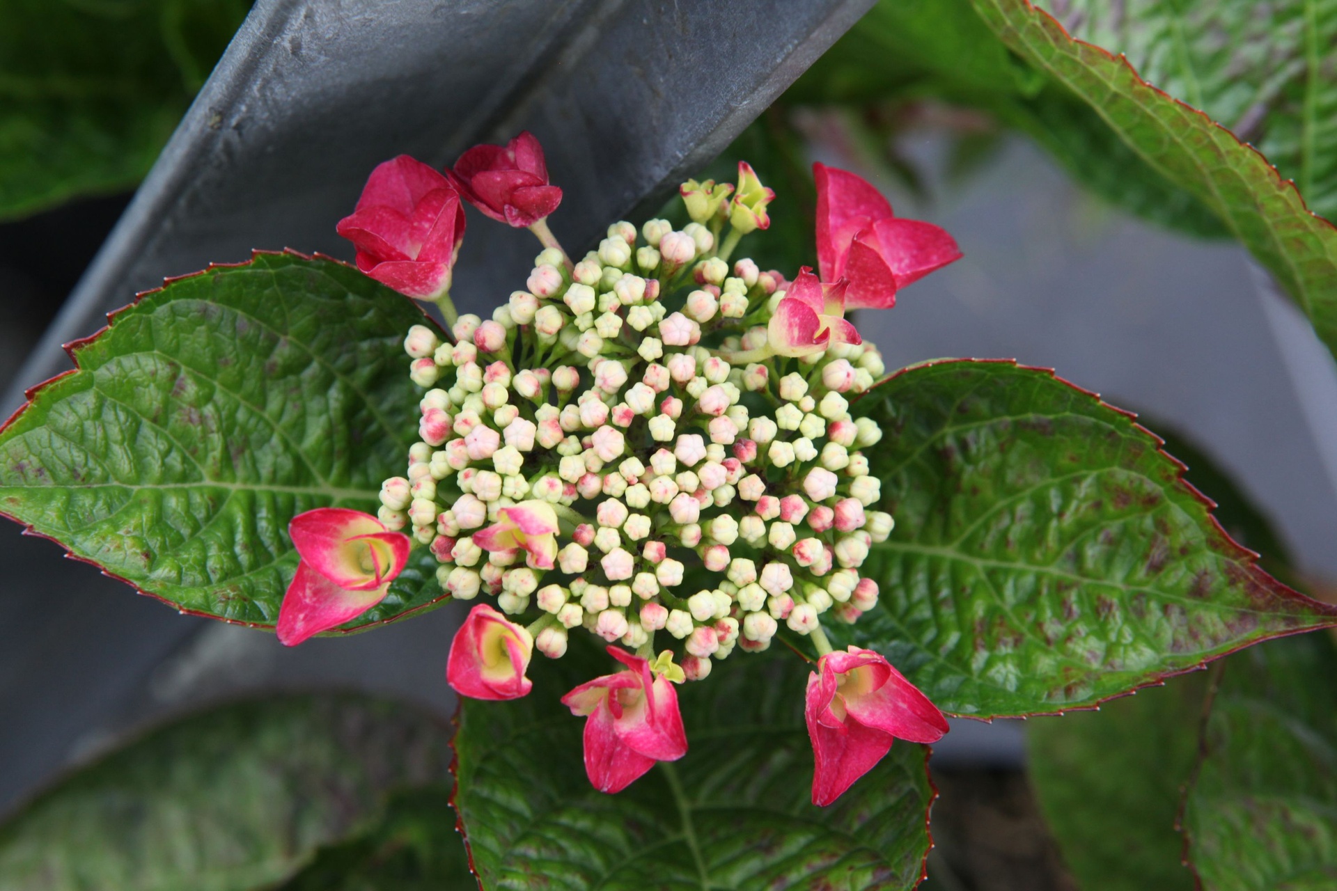 Hydrangea macrophylla 'Rotschwanz' cont. 10L 40/+ cm +f